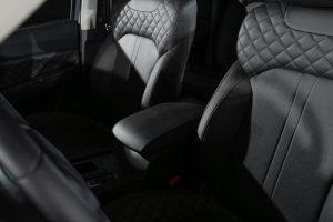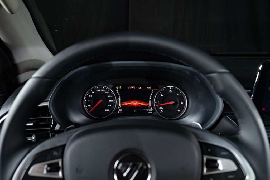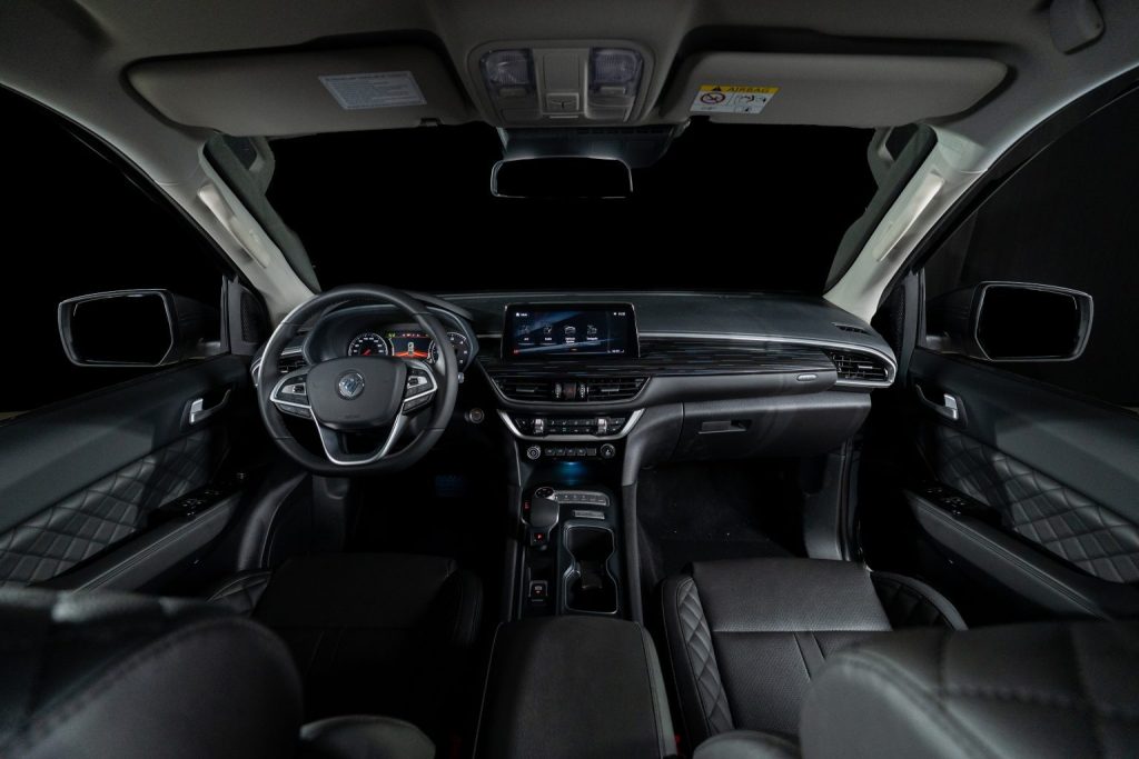 En su interior ofrece asientos de Eco cuero con regulación eléctrica para el asiento del conductor, un tablero principal con pantalla LCD de 7″ + pantalla secundaria táctil de 10“ integrado con sensores de estacionamiento y cámara 360°.l